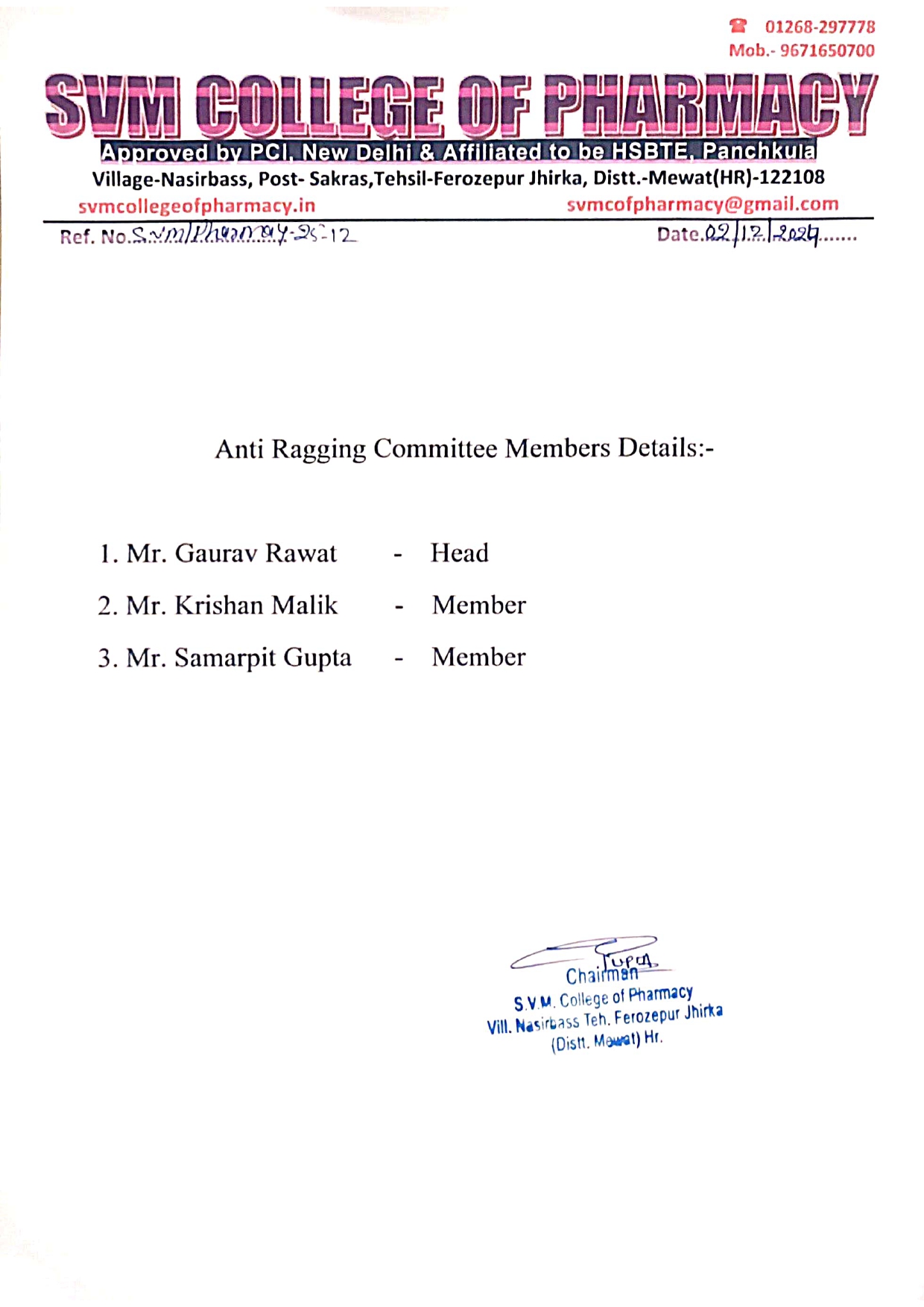 Approved by PCI, New Delhi & Affiliated to HSBTE, Panchkula